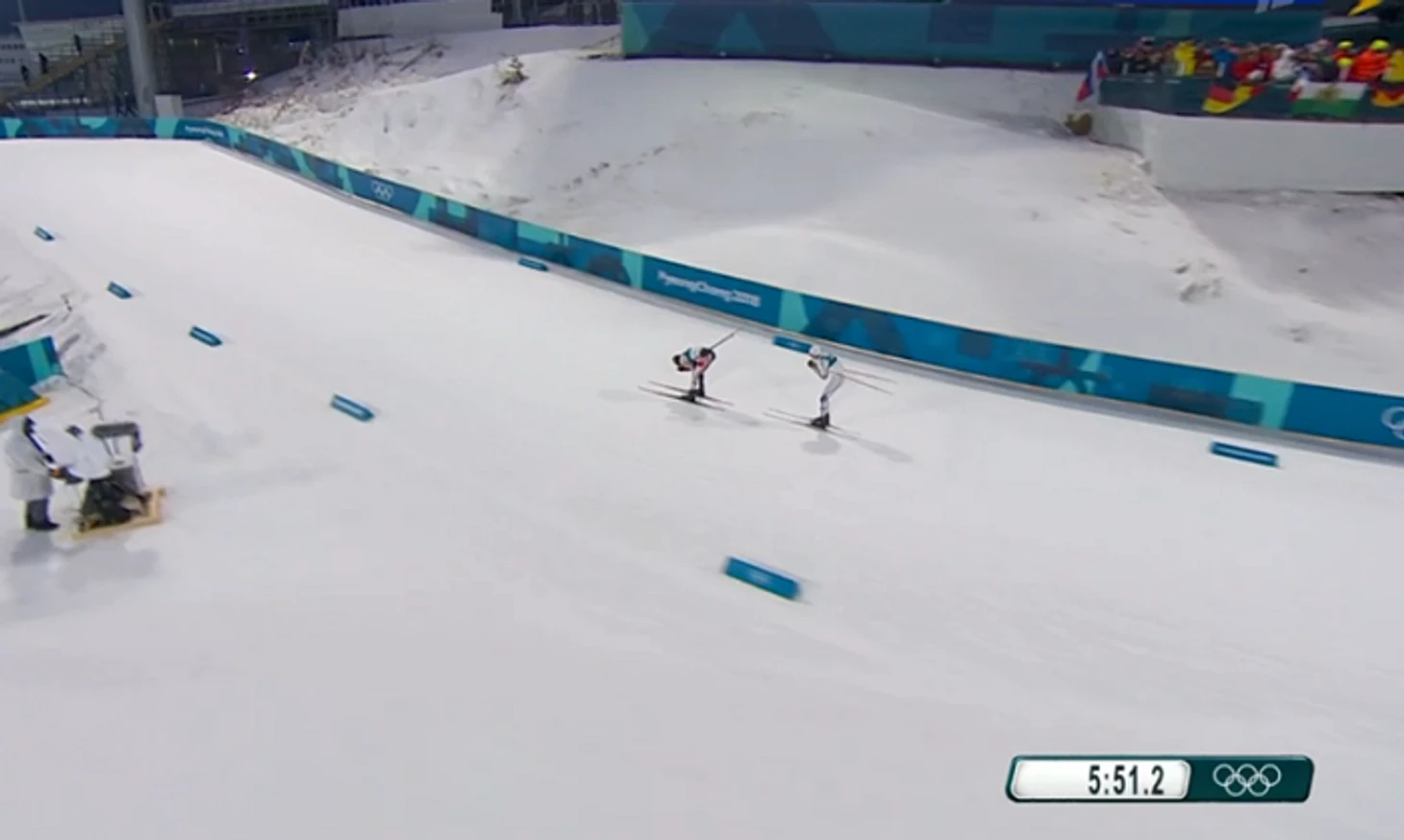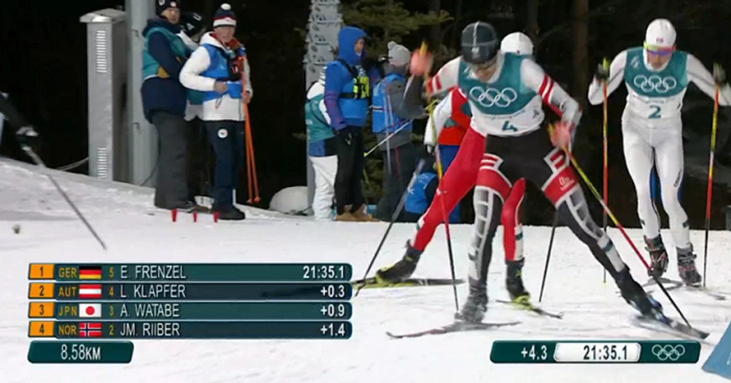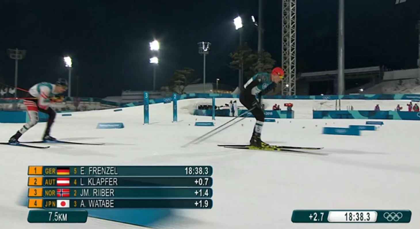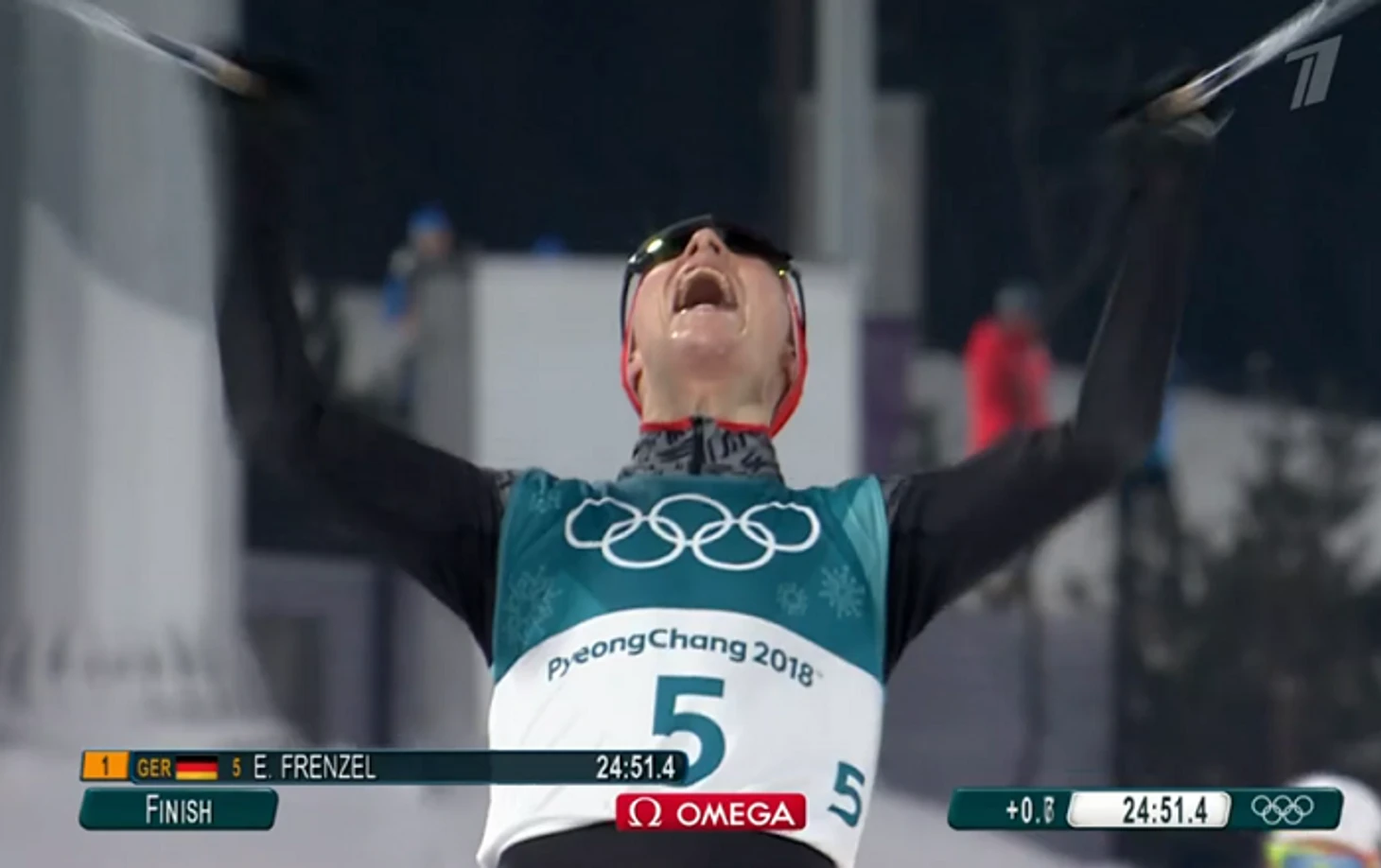 12.33. И все! Немец Эрик Френцель сокрушил конкурентов на финальном отрезке. Он олимпийский чемпион 2018 года!