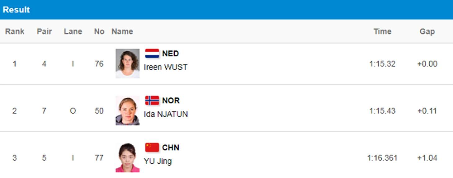 13.30. Голикова пробежала за 1:16.85. Пока она на 7-м месте. Лидирует, конечно, Ирен Вюст из Голландии.
