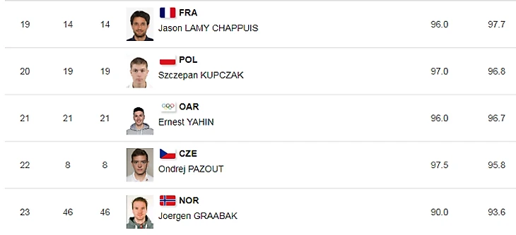 10.55 Яхин на 21-м месте после прыжков со среднего трамплина.