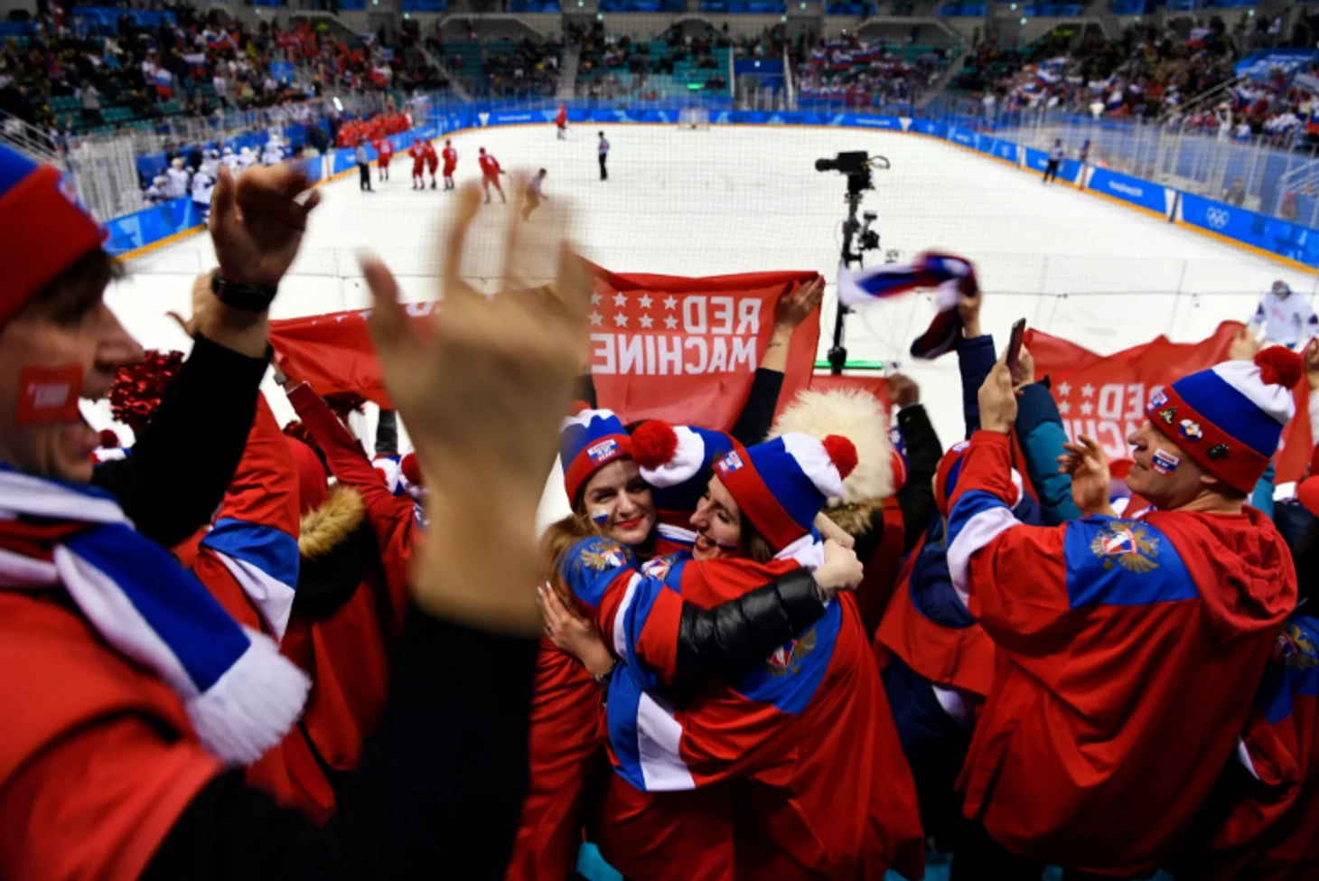 Российские болельщики на трибунах взяли на себя вопрос о компенсировании «как бы анонимности» своих спортсменов и выражении несогласия по поводу наказания, вынесенного Международным олимпийским комитетом. Некоторые из них приехали из относительно близлежащих городов российского Дальнего Востока, таких как Владивосток, Магадан и Южно-Сахалинск. Другие, судя по всему, являлись частями организованных групп и прибывали на соревнования в одинаковых шапках и майках с надписью: «Россия в моем сердце» - насмешка над отсутствием флага на нарядах атлетов.
