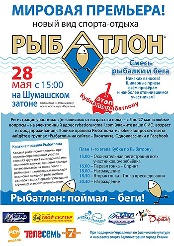 28 мая на Шумашском затоне пройдет первый этап Кубка по Рыбатлону – новому виду спорта, который разработан в Рязани и, по мнению организаторов, может занять достойное место в олимпийской программе, сообщил R-active.