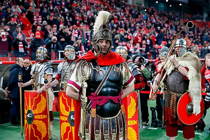 Клуб тоже использует образы, которые навевает гладиатор Спартак. Иногда случаются казусы. На домашнем матче с «Динамо» футболистов при выходе на поле сопровождали римские легионеры. Их воссоздал военно-исторический клуб LegioIIICyrenaica. Правда, римские легионеры вообще-то уничтожили Спартака.