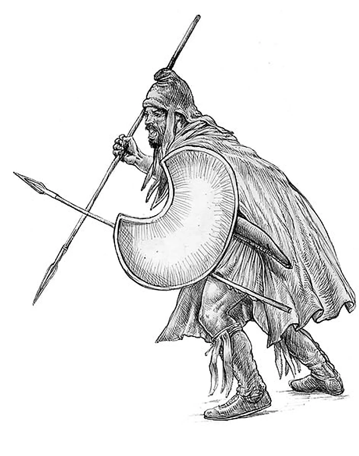 Фракиец рвался в бой, чтобы отец им гордился. Вот только когда римляне нагрянули, он оказался к этому не вполне готов – даже не успел надеть кожаный шлем и фамильные доспехи. С лисьей шапкой на голове, в длиннополом хитоне, поверх которого был накинут суконный бурнус, и с толстыми оленьими шкурами, обмотанными вокруг ног, он наваливался на римлян, пытаясь изрубить как можно больше тел огромным двуручным мечом.