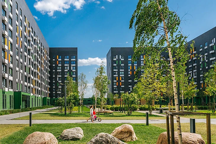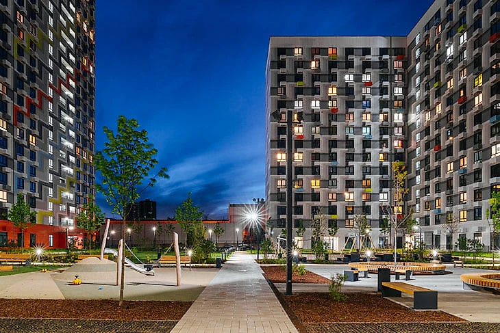 Зеленые дворы-парки площадью в несколько футбольных полей без машин, но с прогулочными зонами, детскими площадками, воркаут-зонами и вай-фаем стали стандартом для любого проекта компании. Современные коробки для футбола и баскетбола переехали за пределы дворов – подальше от окон и недружелюбных бабушек. У ПИК – больше 40 проектов в Москве и Московской области, еще 20 с теми же стандартами – по всей России.
