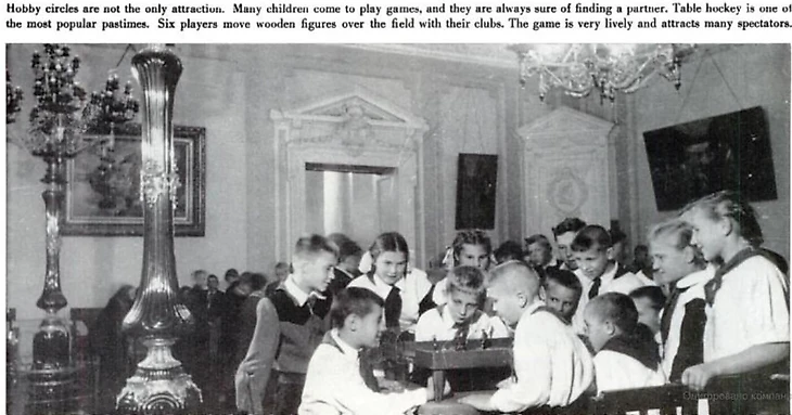 Одной из таких игрушек стал настольный хоккей, который ставили в детских учреждениях по всей стране. В 1957-м англоязычный журнал USSR, выходивший в США по обоюдному соглашению двух правительств (в Союзе американцы выпускали журнал «Америка»), рассказывал и показывал: «Настольный хоккей – одно из самых популярных развлечений. Шесть игроков двигают деревянные фигурки по полю. Игры очень оживленные и привлекают много зрителей».