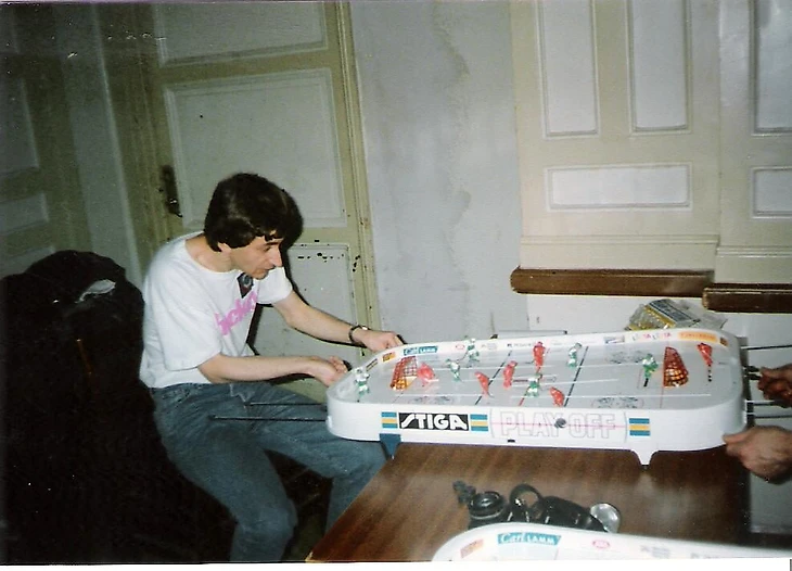 UPD: Игорь вышел на связь и прояснил ситуацию: он выступал на первом чемпионате Европы, который прошел в 1990 году в шведском Лунде. Еще он прислал видео с ютуб-канала Йорана Агдура (о нем чуть ниже), в описании к которому тот называет его «самым первым игроком, выступавшим за Россию в настольном хоккее». И даже нашел атмосферные фотографии с того чемпионата.