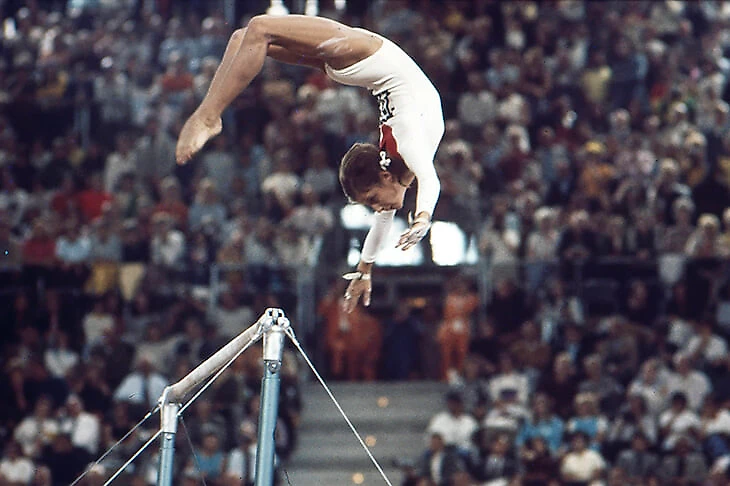 В 1970-е советская спортсменка показала миру сальто назад на бревне и флик-фляк – прыжок назад с двух ног: эти элементы назвали в честь Корбут. Но главный трюк – конечно, сверхэкстремальная петля на брусьях.