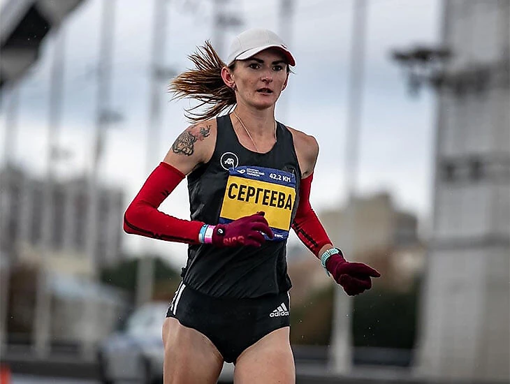 Ирина Сергеева, профессиональный бегун из Курска. Вице-чемпион России-2019 по марафону. Серебряный призер молодежного чемпионата Европы на 10.000 метров и серебряный призер чемпионата Европы по кроссу среди молодёжи. Личные рекорды: 10 км – 32 минуты 40 секунд, марафон – 2 часа 31 минута 58 секунд.