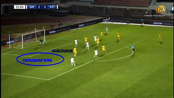 Третий гол. Проблема не только в Бейсебекове, сломалось что-то на глобальном уровне, и соперник легко воспользовался свободным пространством.