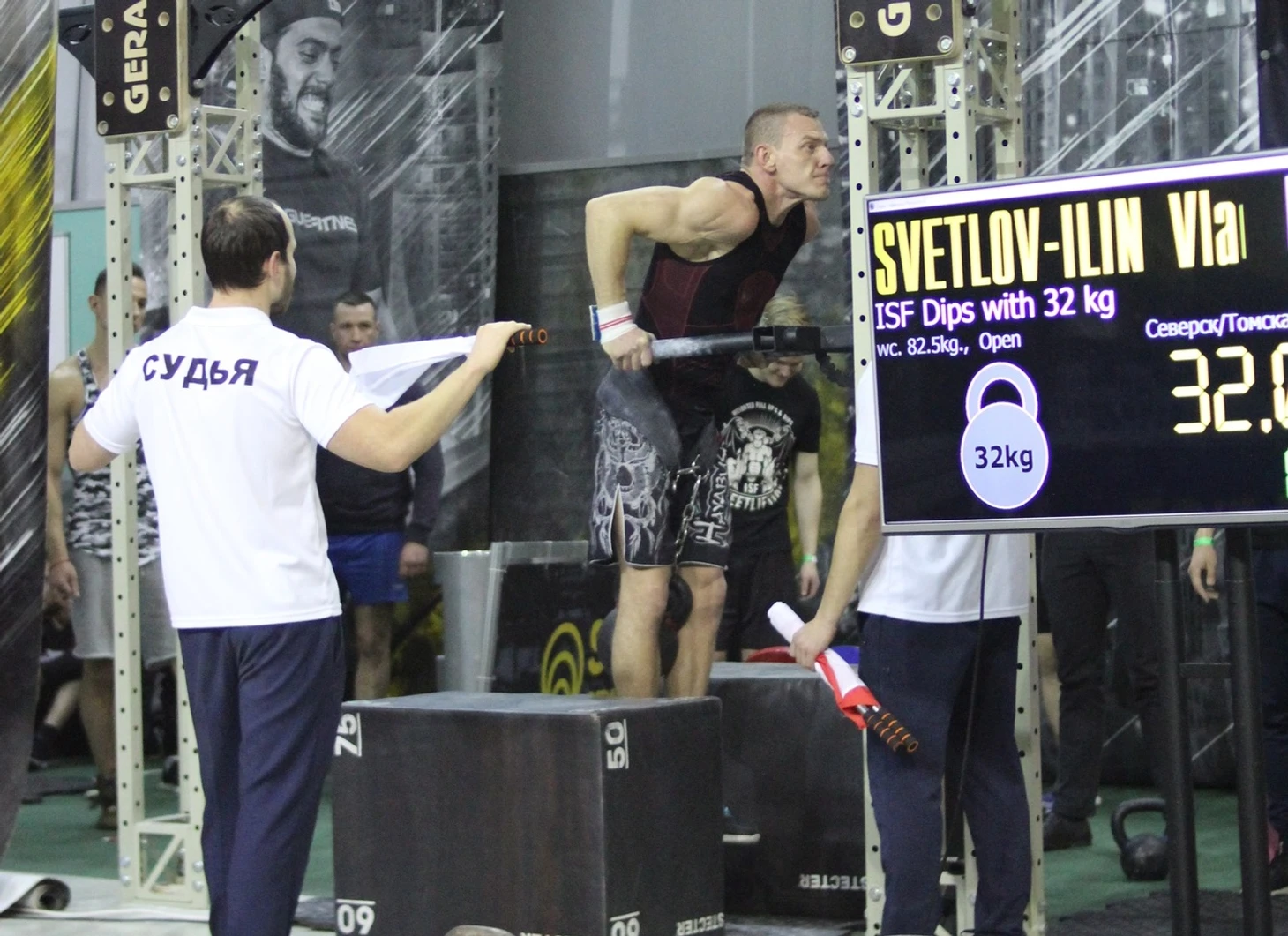 Спортсмены выполняют поочерёдно 2 упражнения: подтягивание на перекладине и отжимание на брусьях. На выполнение упражнений даётся по 3 подхода (раунда). К поясу спортсменов подвешивается дополнительный вес, заказанный им перед выполнением подхода (раунда). В зачёт идёт сумма максимальных результатов в упражнениях, засчитанных судьями.