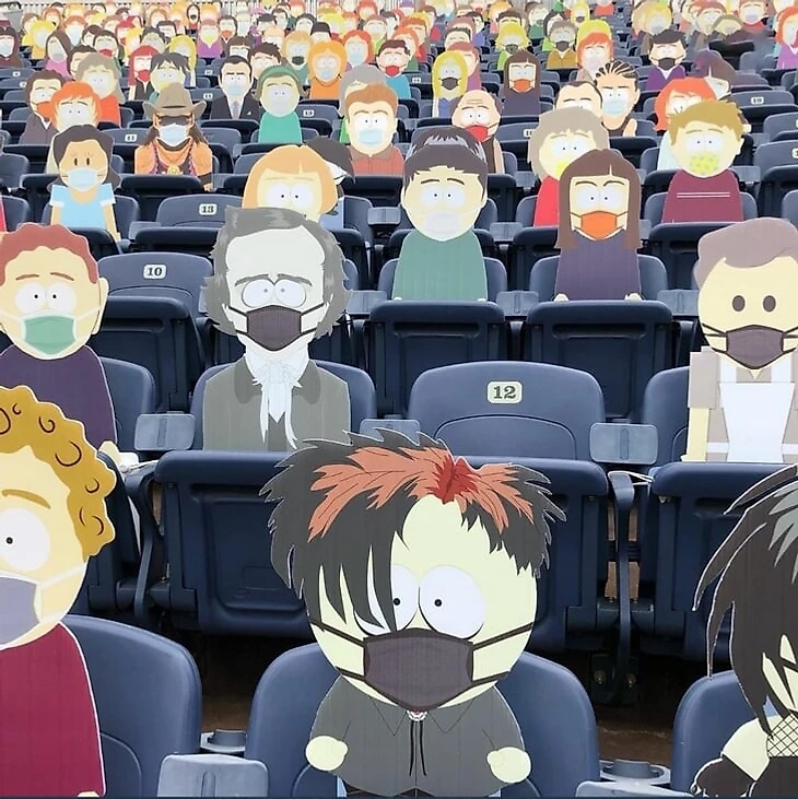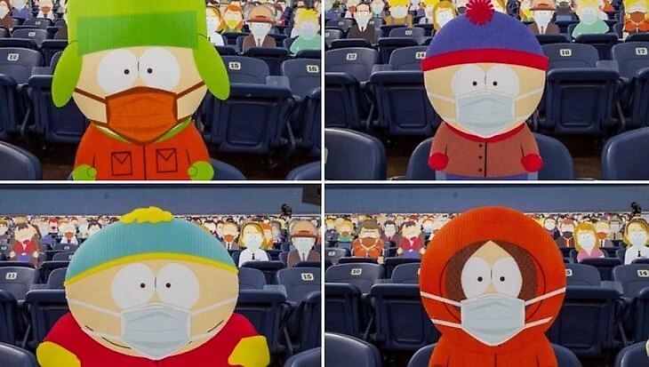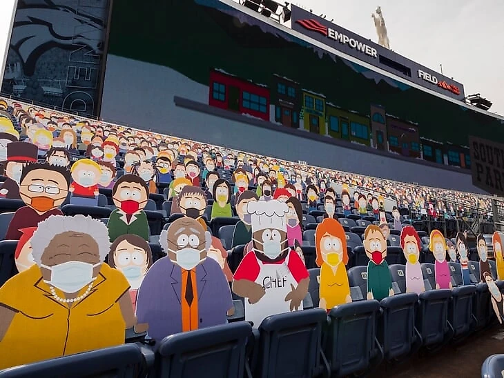 Клуб НФЛ «Денвер Бронкос» на матч с «Тампа-Бэй» заселил несколько секторов стадиона персонажами из культового мультсериала «Южный Парк». Эрик Картман, Стэн Марш, Кайл Брофловски и Кенни Маккормик – все в сборе. На каждом – маска.