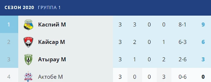 • В конференции «Запад» «Атырау» может пройти во второй дивизион с 1 победой в 3-х играх. Все запутанно на Западе: участие приняло 4 команды. Сильнее всех оказался «Каспий М», но в Первой лиге они не могут сыграть, если основная команда вылетит из Премьер-лиги (к чему они близки – предпоследнее место после 11 игр). Согласно пункту 4.15 регламента Первой лиги: «не допускается одновременное участие в Первенстве 2-х и более команд, контролируемых (находящихся в собственности) одним физическим или юридическим лицом в целях соблюдения стабильности Первенства и принципа справедливой игры». Тогда повышения в классе добьется даже не «Кайсар М», который занял второе место в конференции (в Первой выступает фарм-клуб «Кайсара» – «Байконур»), а «Атырау М» с 1 победой, если старшие «нефтяники» выйдут в Премьер-лигу, а это очень вероятно.