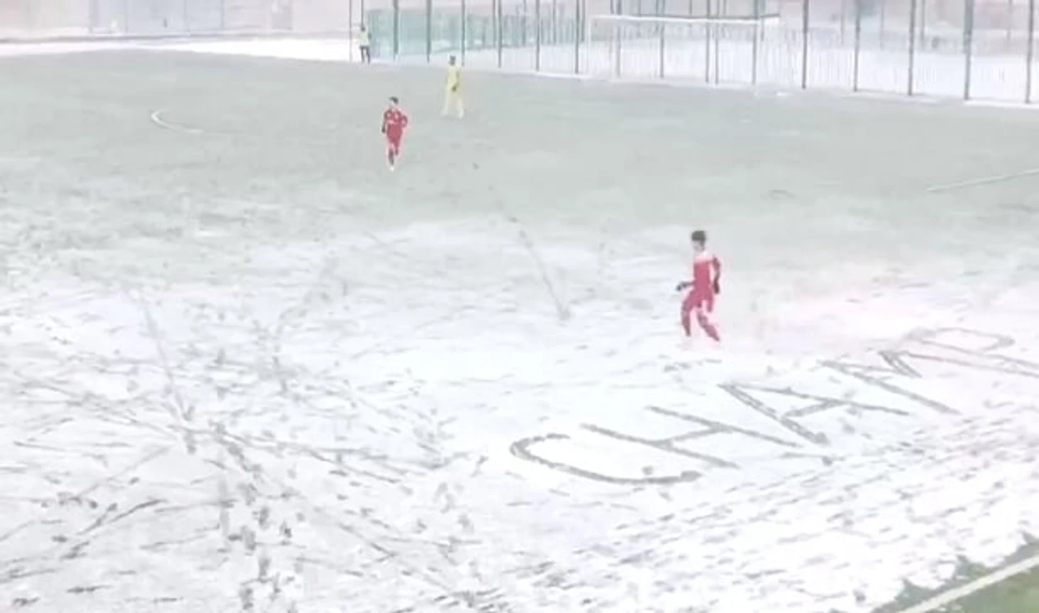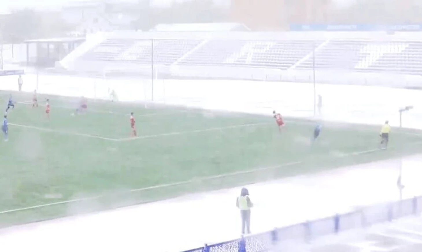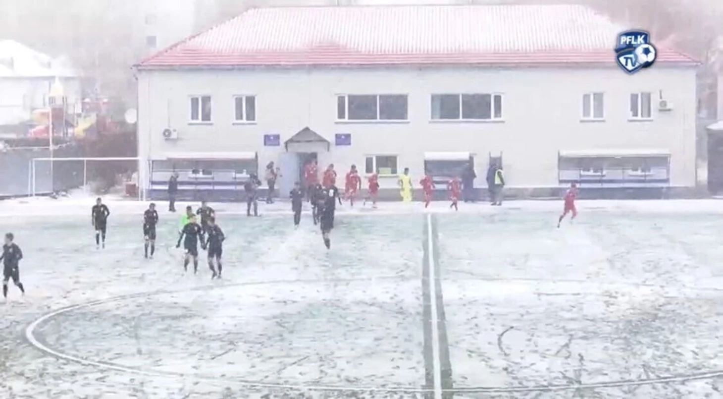 В Павлодаре выпали обильные осадки, поэтому игра «Актобе» – «Экибастуз» на искусственном поле стадиона «Жулдыз» выглядела так. Снег выпал так неожиданно, что не нашлось даже оранжевого мяча.