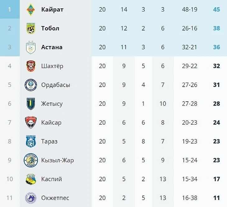 Меньше остальных пропустил «Тобол» (16). Антирекорд принадлежит пропустившему 38 мячей «Окжетпесу».