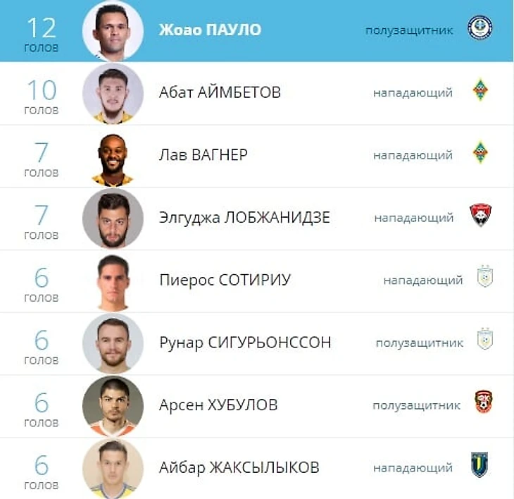 32-летний игрок «Ордабасы» Жоао Пауло, забивший сегодня еще один мяч, выиграл гонку бомбардиров. Кайратовцу Абату Аймбетову не удалось догнать бразильца.
