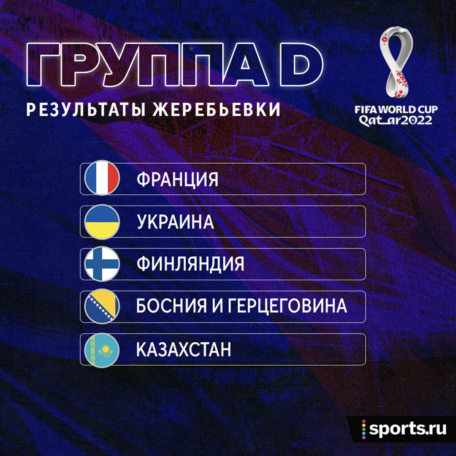 Сборная Казахстана из пятой корзины отправилась в группу D – всего у нее будет 4 соперника и 8 матчей. Соперниками выступят Франция, Украина, Финляндия, Босния и Герцеговина.