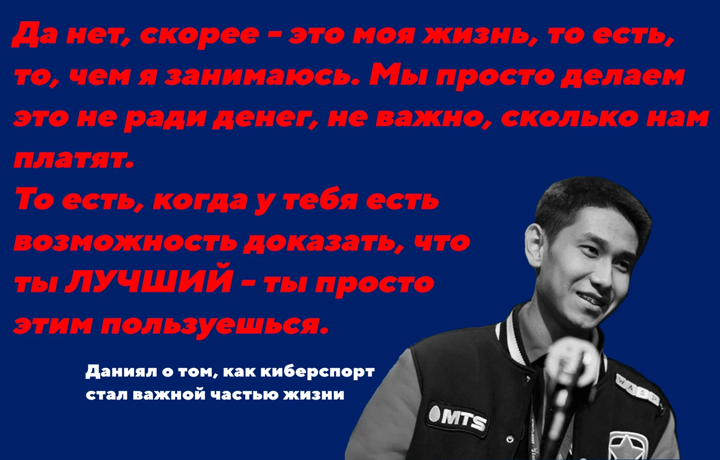 В нашем киберспорте таких высот достичь очень тяжело, учитывая его историю с 2000-х годов. Но Даниял, несмотря на давление мнений и сомнения, рискнул и не жалеет об этом. Сейчас он из тех немногочисленных людей, кому удалось добиться успеха в киберспорте. Но его главные успехи еще впереди – поболеем и пожелаем удачи Даниялу!