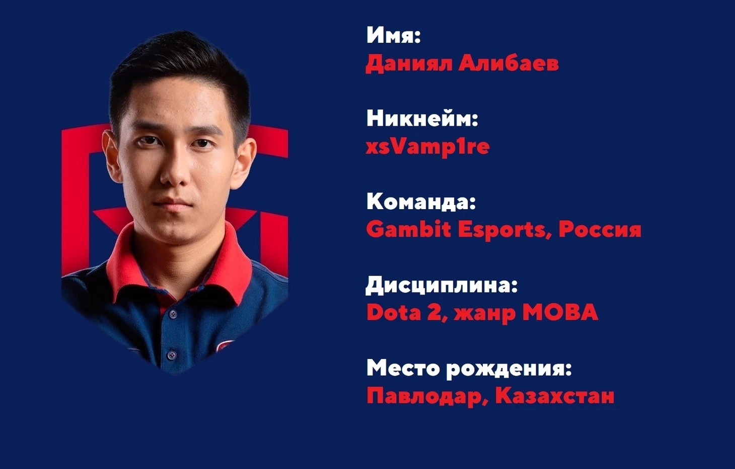 Киберспорт – молодая сфера, тем более для Казахстана. Как вид спорт в нашей стране его признали лишь в 2018 году, сейчас он на стадии развития и принятия на социальном уровне. Одним из ярких примеров является Даниял xsVamp1re Алибаев – игрок известной российской киберспортивной организации Gambit Esports.