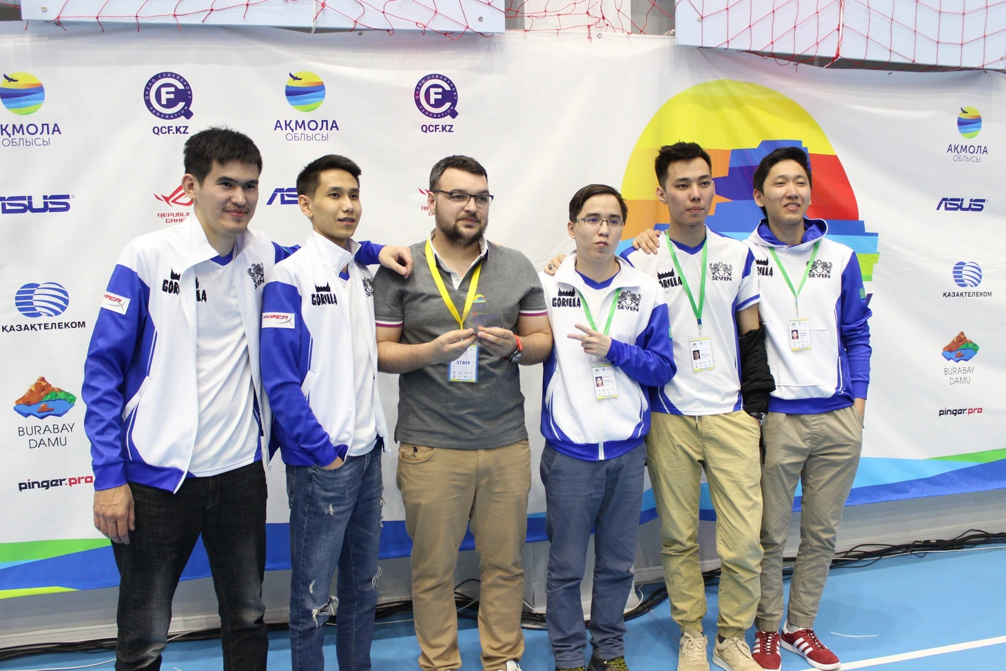 Вот они (слева направо) – Дастан D4574N-SG Оразалы, Даниял xsVamp1re Алибаев, Евгений Богатырев (экс-руководитель Se7en Esports, ныне вице-президент Федерации Киберспорта Казахстана), Наирман Hannah Жакитжанов, Дулат goddam Сейдимомын и Абдималик Malik Сайлау.