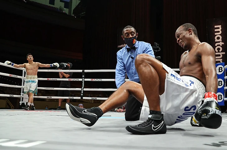 7. Намибиец Джулиус Индонго не может продолжить бой после технического нокаута от Данияра Елеусинов в бою за вакантный пояс IBF Intercontinental в полусреднем весе.