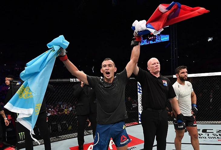 Интересно, что похожая история связана и с нашим флагом. В 2018 году в октагоне UFC впервые появился Дамир Исмагулов. Он этнический казах, но родом из Оренбурга (там наших много), поэтому вынес сразу два флага – российский и казахстанский.