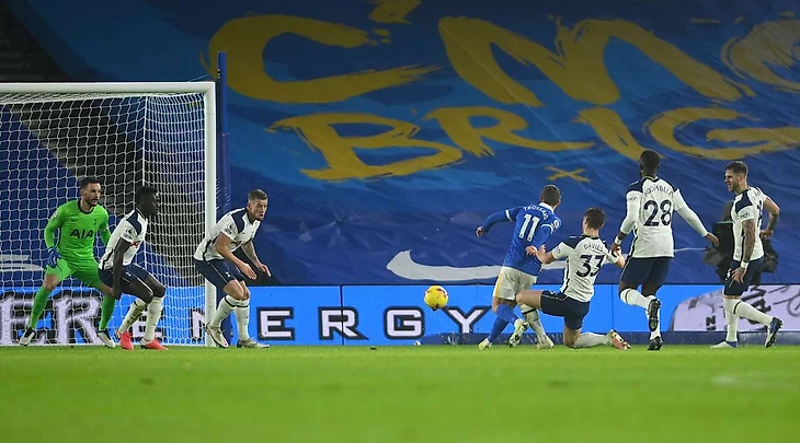 Ужасный первый тайм для шпор. Матч с одним из аутсайдеров должен складываться для Тоттенхэма в ином русле. Шпоры умудрились нанести ноль ударов в створ против одного у Брайтона. При том, что Брайтон нанес 10 ударов за первый тайм, а шпоры всего 1. Уго также совершил один сэйв. Жозе словно потерял нить игры..ведь чайки во всем превосходят шпор.Паскаль Горсс отлично увидел открывание в штрафной одноклубника Троссарда, тот растрелял ворота и открыл счет в матче 1-0.
