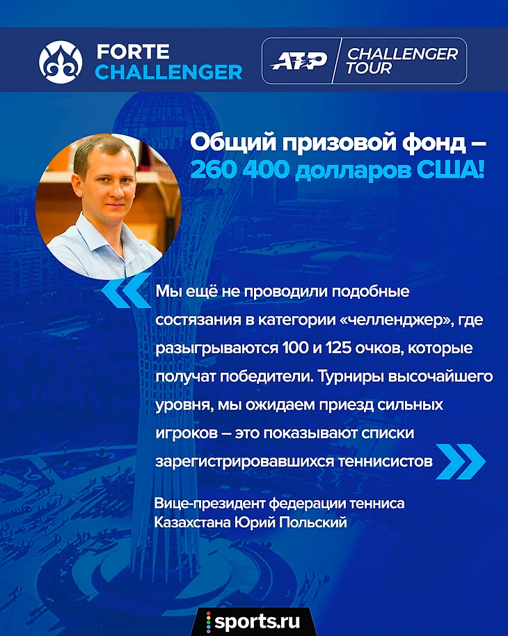 Пока на другом конце света Джокович и Медведев готовятся к финальному матчу Большого шлема, 21 февраля в Нур-Султане стартует турнир серии ATP Challenger Tour – Forte Challenger 100, который продлится до 28 февраля. Сразу после него столичные корты примут практически такой же турнир – Forte Challenger 125, он завершится 7 марта.