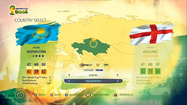Стоит отметить, что в специальных изданиях, посвященных Чемпионату Мира или Европы, мы могли лицезреть главную команды страны. В последний раз это было в игре 2014 FIFA World Cup Brazil. Правда, имели такую возможность только обладатели PlayStation 3 и Xbox 360, поэтому мне, как заядлому «пекарю», не удалось вытащить подробности. Единственное, что я нашел – это скриншот из селектора команд.