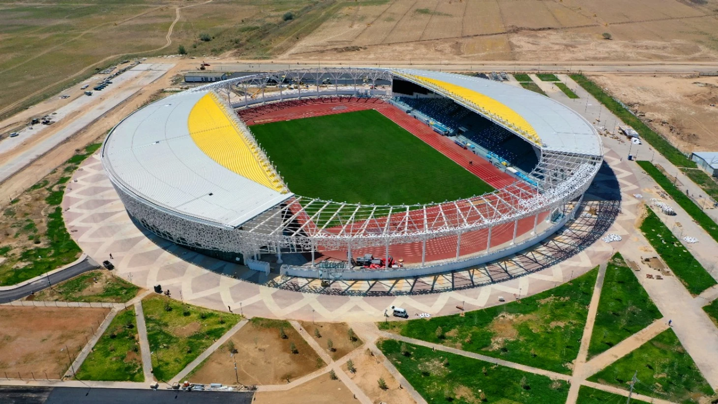Одним из множества новых объектов в Туркестане стал и стадион. Первый официальный матч на этой арене состоится уже во вторник, но, к сожалению, пока без зрителей.