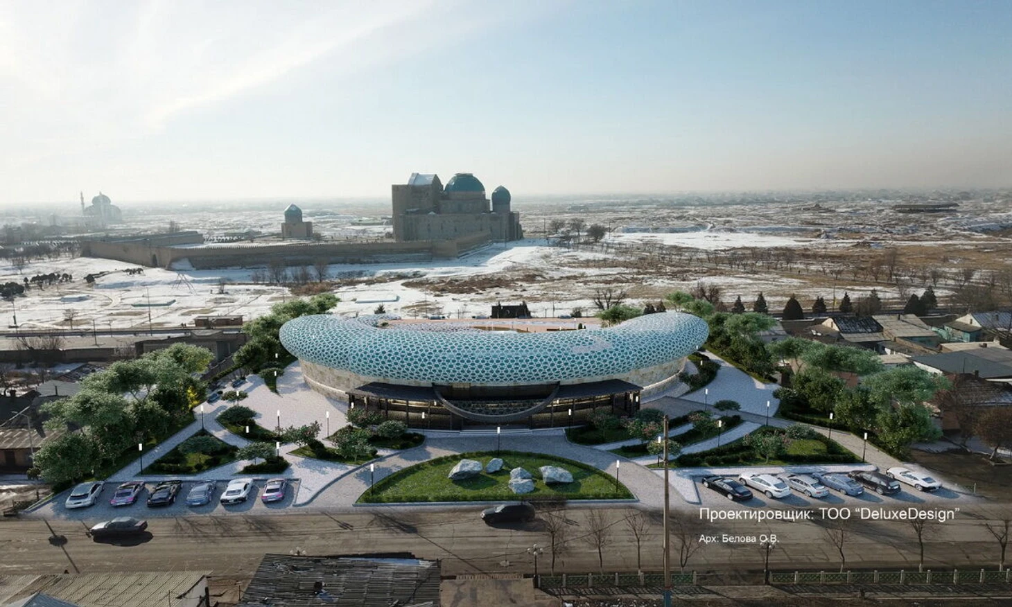 Город условно поделили на три части: культурно-духовный центр, административной-деловой центр и жилой район. Вся стройка ведется при постоянном контроле ЮНЕСКО. Мавзолей Ходжа Ахмеда Яссауи – один из объектов всемирного наследия, поэтому, к примеру, здания поблизости от мавзолея не должны превышать определенную высоту.