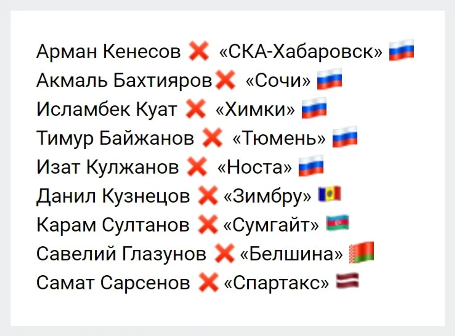Казахстанские футболисты которые покинули зарубежные команды (в период январь-февраль 2021 года)