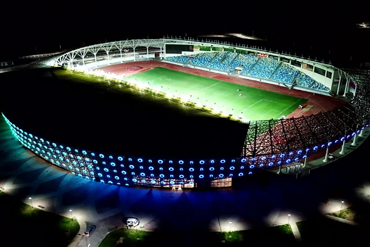 Оставлю на совесть проектировщиков, строителей, региональных властей качество построенной арены. Прямо сейчас Туркестан - одно из лучших мест для весеннего футбола, если кратко, то это самый южный регион Казахстана.
