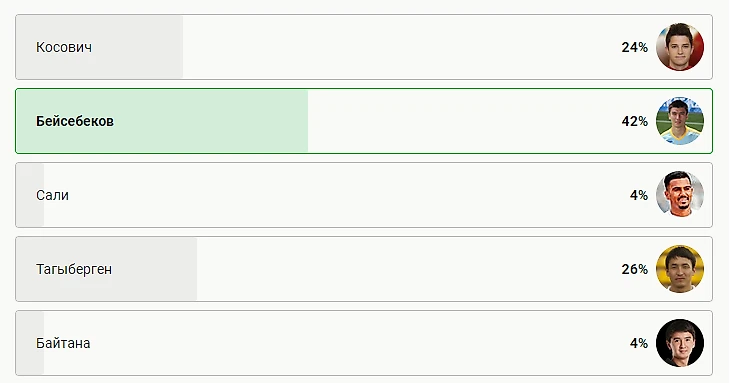 Вы признали гол Бейсебекова ударом пяткой лучшим в первом туре. Тагыберген и Косович – в тройке