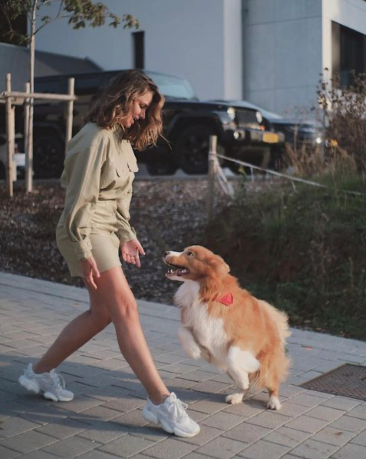 Также у девушки есть прекрасный пёс породы Бордер-колли — Атлас.