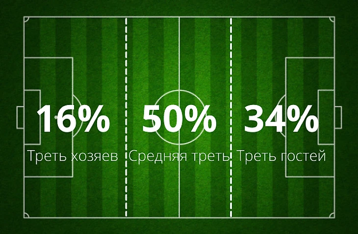 Увеличилось время владения мячом, почти на половину, с 23,5% до 33,5%