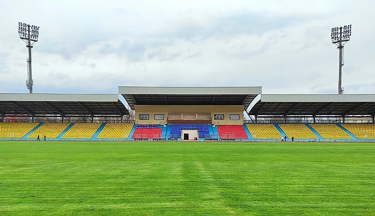На «Центральном» в Таразе ситуация намного лучше. Натуральный газон в неплохом состоянии, местный клуб провел здесь уже несколько матчей.