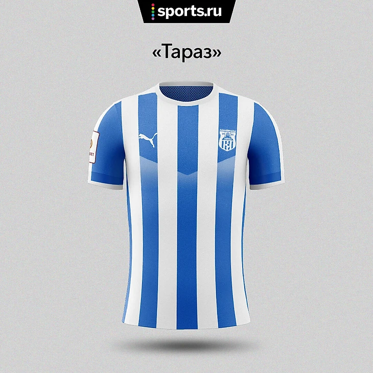 Попробовать что-то новенькое решили и в «Таразе». Полосатые бело-голубые футболки смотрятся вполне стильно.