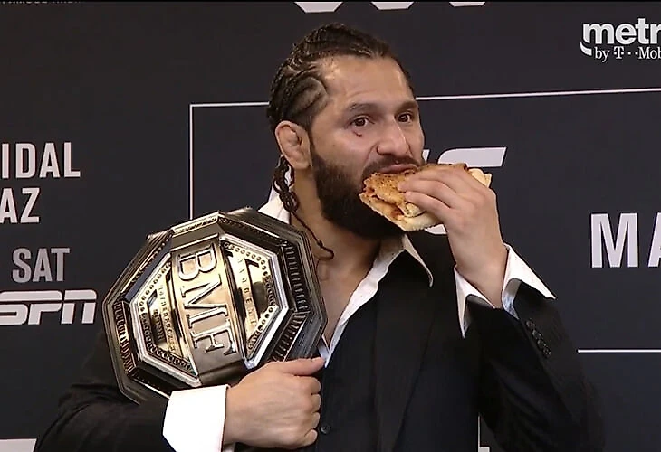Пиццу любят почти все, и бойцы – не исключение. В 2019-м Хорхе Масвидаль после победы над Нейтом Диасом пришел с куском пиццы прямо на пресс-конференцию.