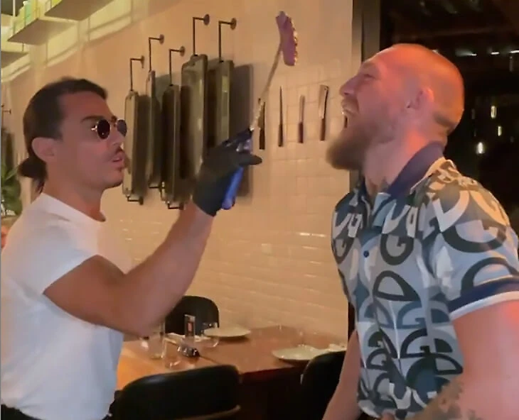 Однажды Конор во время отпуска в Дубае заглянул к самому известному мастеру по стейкам – турецкому шеф-повару Нусрету Гекче, и попробовал его знамениый золотой стейк.