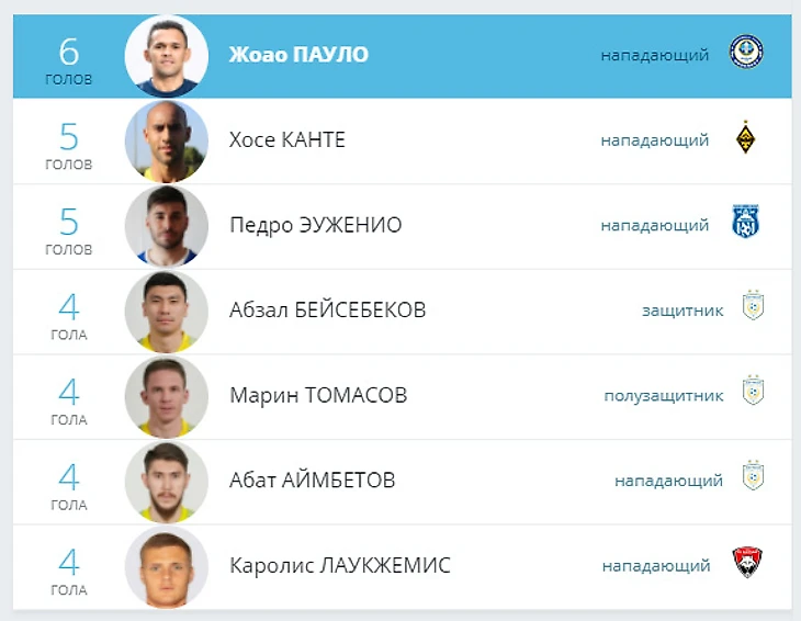 В бомбардирской гонке лидер – Жоао Пауло с шестью мячами, у Хосе Канте и Педро Эуженио по пять голов. Еще четыре игрока забивали по четыре раза.