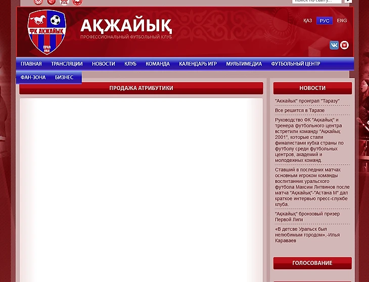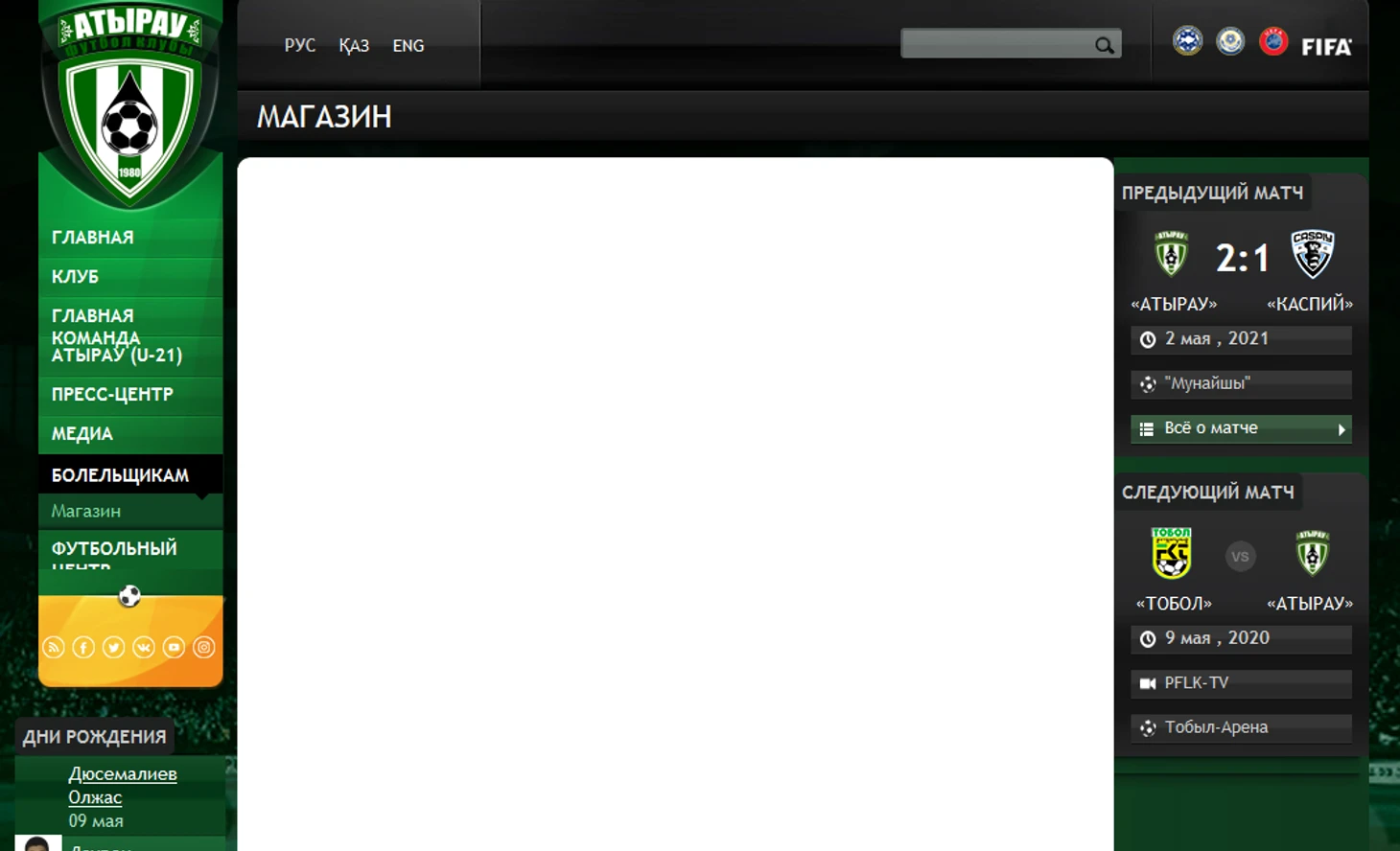 У «Атырау» интересный раздел интернет-магазина. Русскоязычный сегмент в нем пустует. Всю информацию, о том как и где купить атрибутику клуба вы узнаете только перейдя в казахоязычную версию сайта или, что интереснее, в английский раздел. Что еще интереснее, сама информация подается на русском языке.