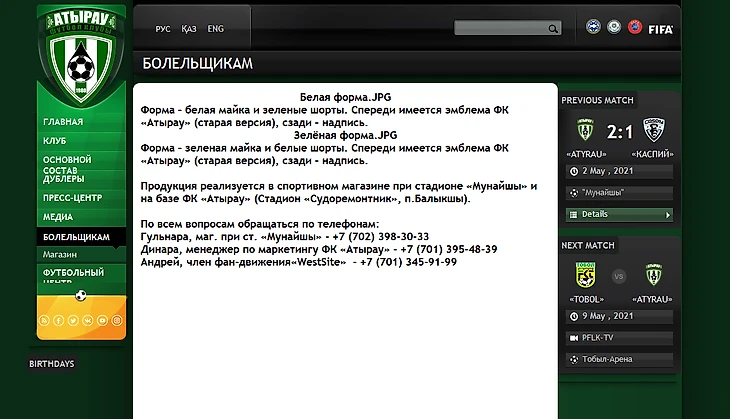 Где купить: в г. Атырау: в спортивном магазине при стадионе «Мунайшы»; на базе ФК «Атырау» в п. Балыкшы (стадион «Судоремонтник»)