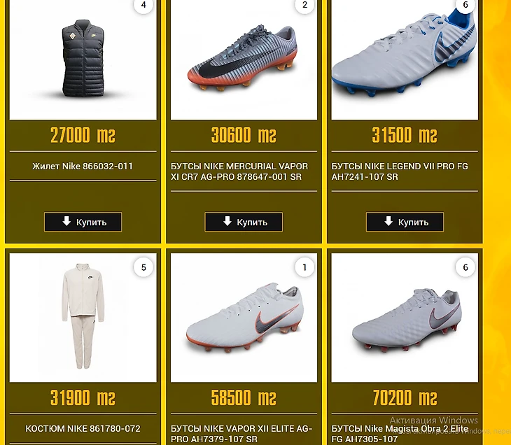 Самым дорогим товаром интернет-магазина являются бутсы за 70200 тг, а самым дешевым – сувенирная майка за 1200 тг.
