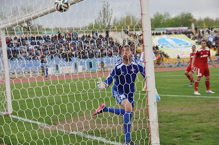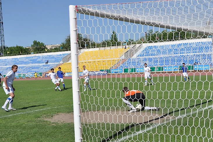 Уже на второй минуте я ловлю первый гол матча. Касьянов подавал угловой, который головой замкнул капитан Аширбеков. Вот он, есть на фото (показывает фото в одном из альбомов – прим.)