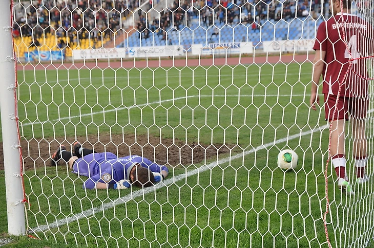 Тут уже я ответил, что выбрал нужные ворота и нужный момент. Позже сделал похожее фото со Стасом Покатиловым.