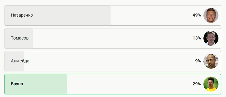 У нас было 4 номинанта. Больше всего голосов вы отдали за гол парашютом от Павла Назаренко из «Акжайыка». За него проголосовало почти половина пользователей.