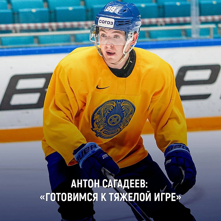 Нападающий сборной Казахстана Антон Сагадеев также рассказал об ожиданиях от первого матча на турнире: