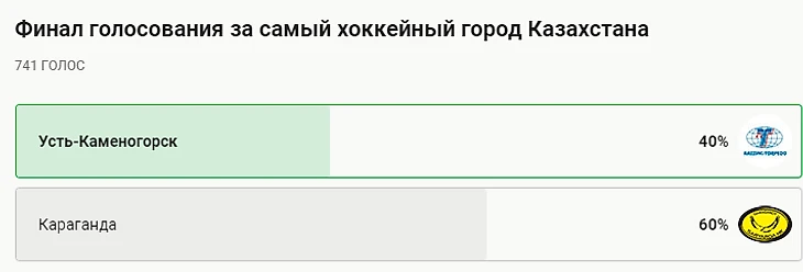 Но это не помешало карагандинцам в четвертьфинале уверенно пройти Кокшетау (82% на 18%), а в полуфинале разобраться с городом, в котором базируется клуб КХЛ «Барыс» (69% на 31%).