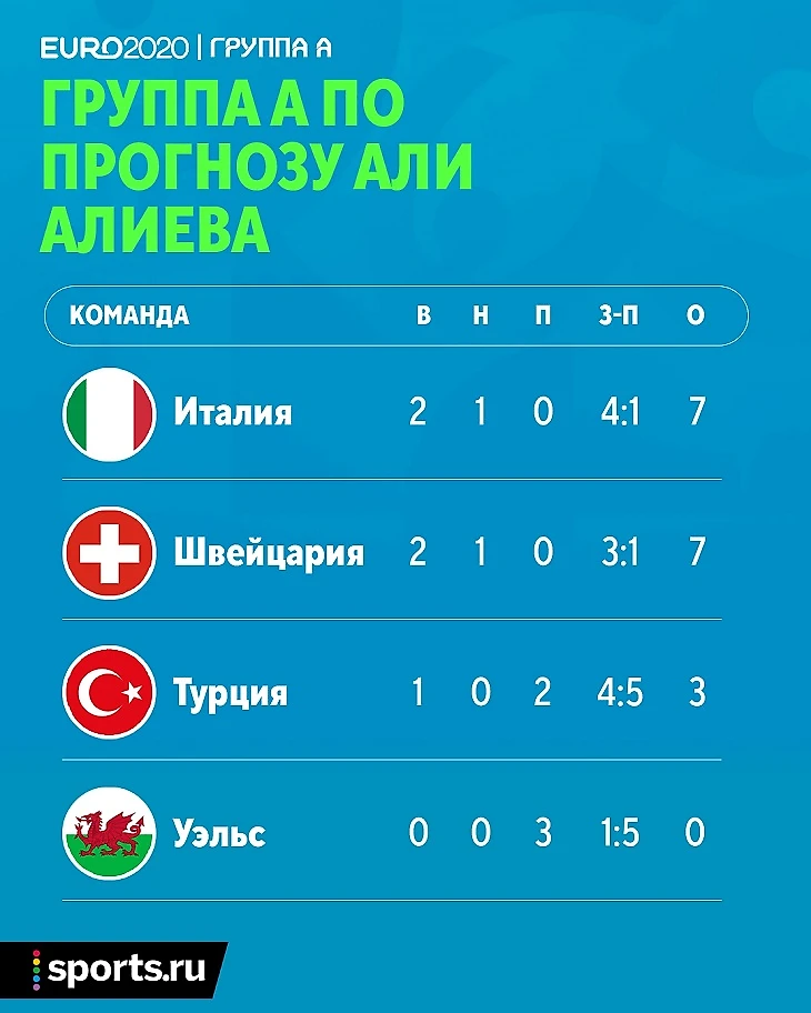 Али Алиев прогнозирует группу А: Турция проиграет Швейцарии, а итальянцы разберутся с Уэльсом