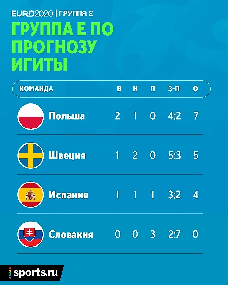 Игита прогнозирует группу E: Испания будет только третьей – пропустит вперед Польшу и Швецию